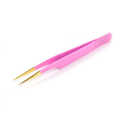 Egyenes műszempilla csipesz (rózsaszín, aranyvégű)